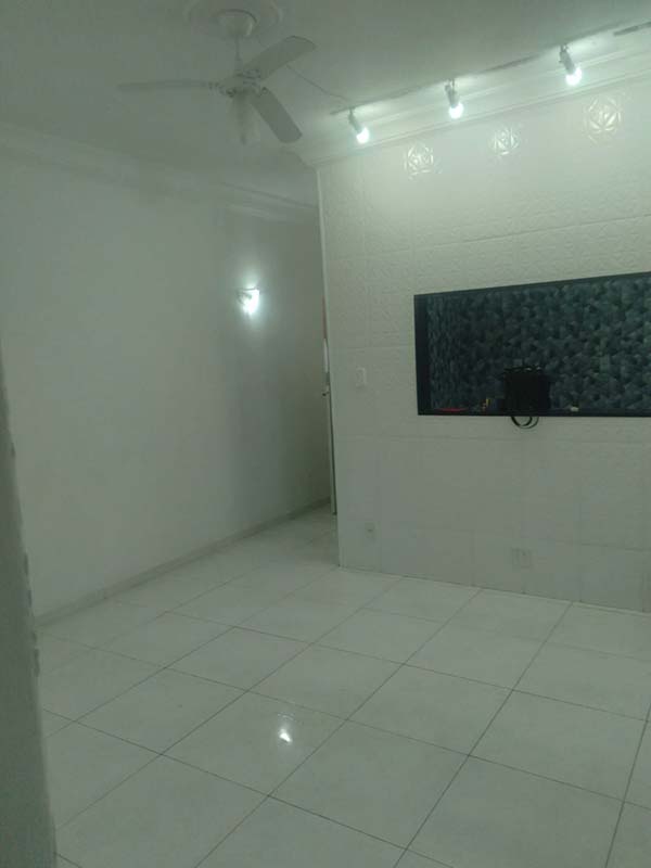 A sala conta com ventilador de teto e iluminação diferenciada, proporcionando um ambiente moderno e agradável para receber amigos ou relaxar após um dia de trabalho.
